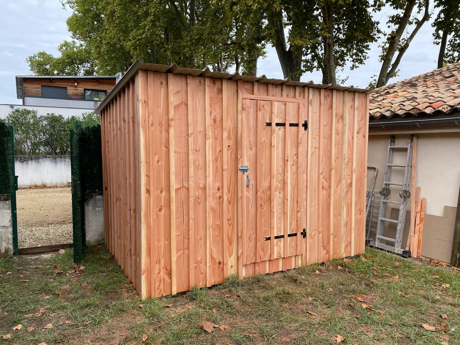 Ce propriétaire a fait appel a notre équipe pour le construction d' un abri de jardin en bois avec une toiture en tuile .