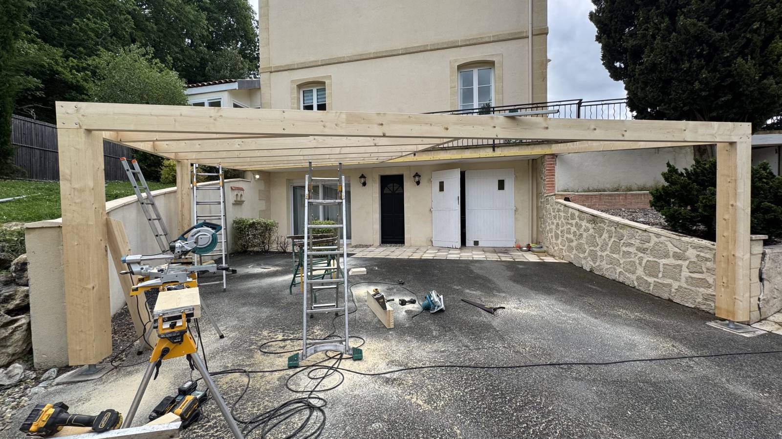 La Construction de abri bois monopente sur mesure pour voiture sur la commune de Croignon, proche de Bordeaux : un projet sur-mesure qui allie technicité, esthétique et fiabilité.