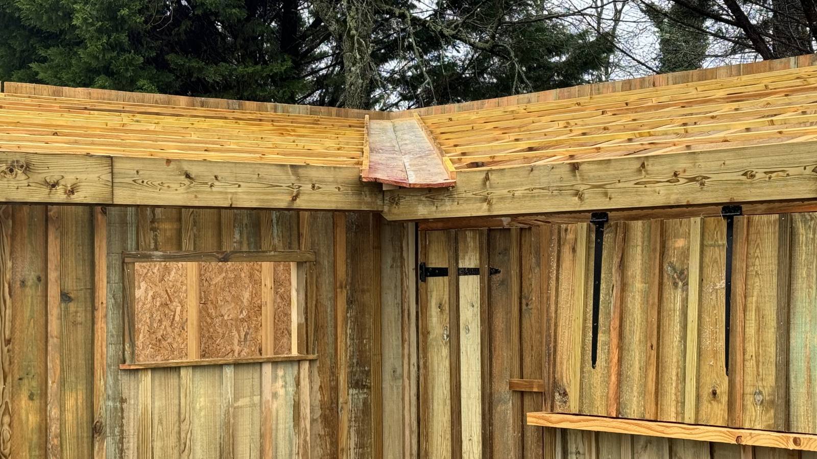 - Pose de la toiture: La toiture est posée et étanchéifiée.