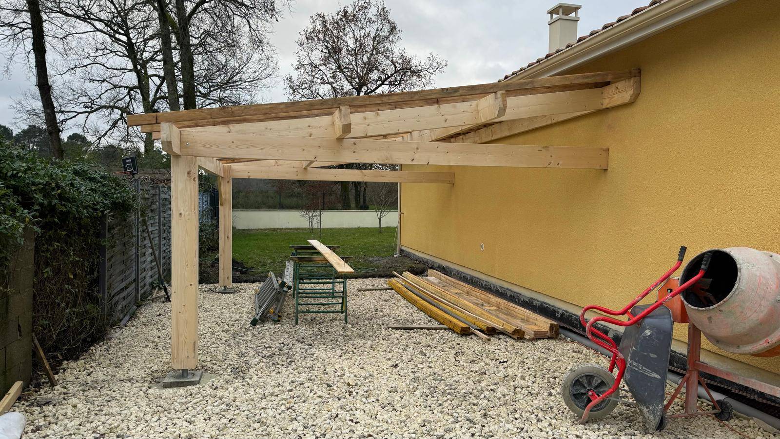 Ce projet consiste en la conception et la réalisation d’un abri voiture adossé à la maison, situé à Margaux-Cantenac.