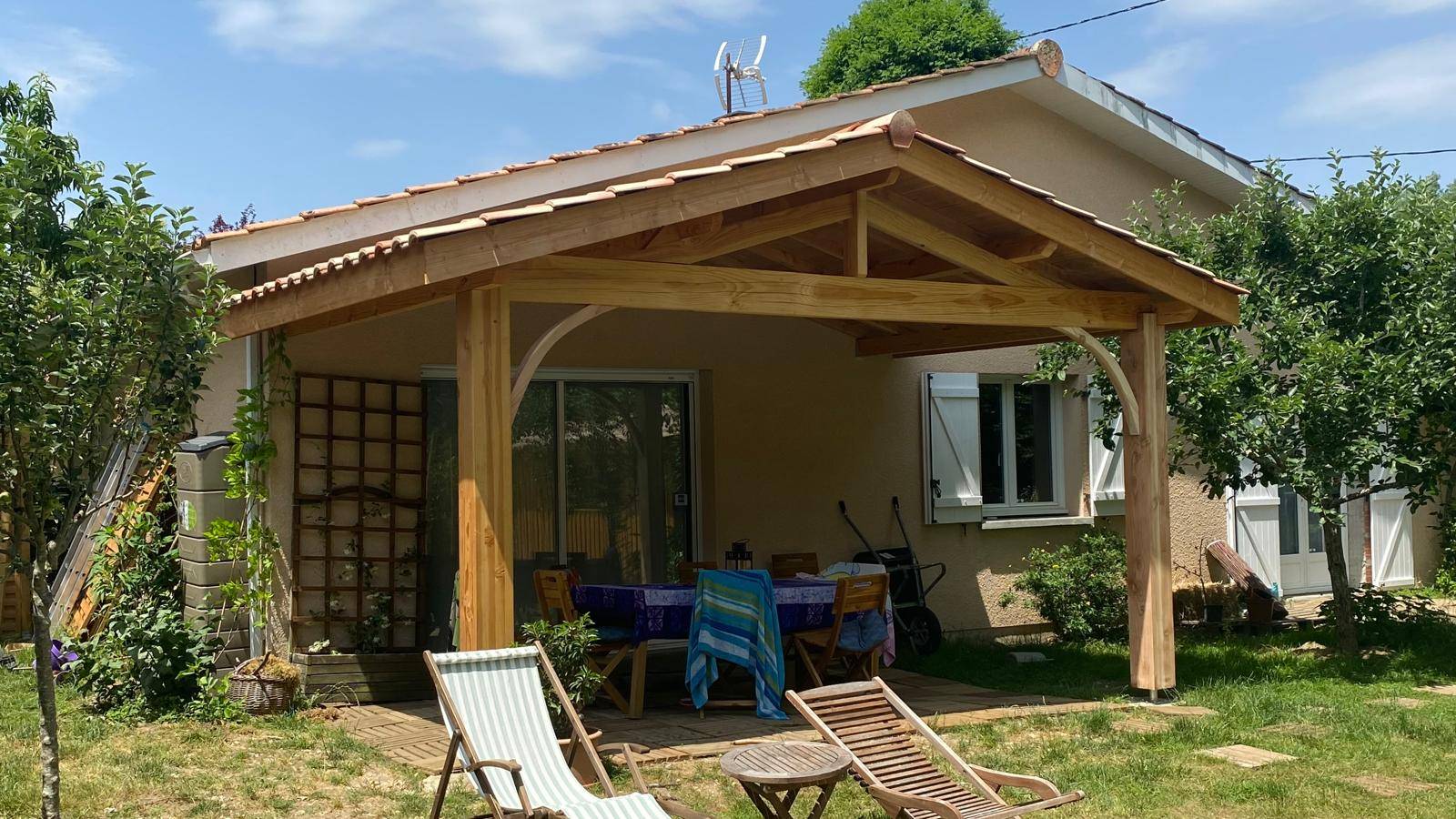 Pour votre projet de pergola deux pentes en bois traité classe 2 à La Brède proche de Langon, faites confiance au professionnalisme et à l’expérience de l’entreprise Guinard Bois.